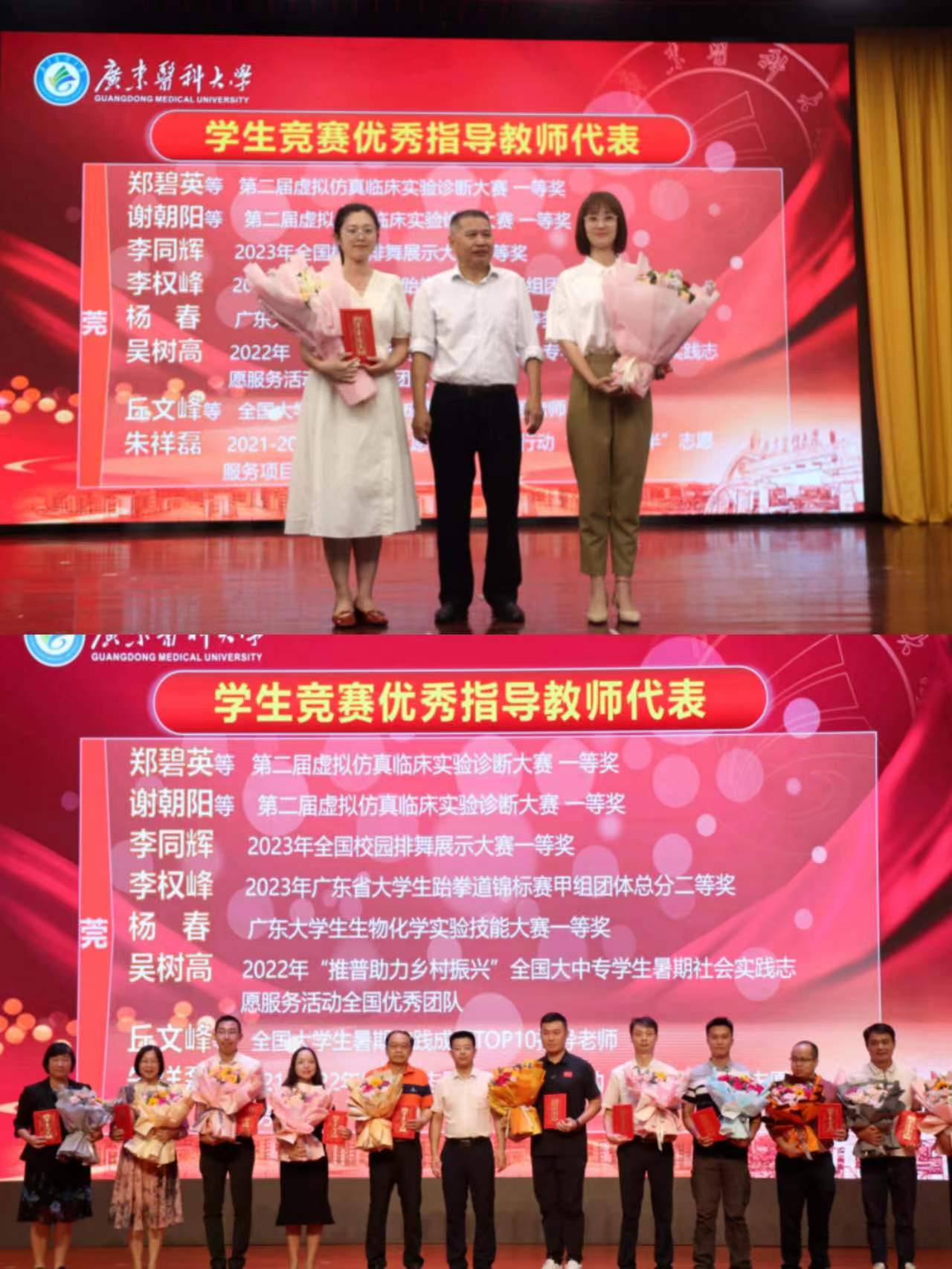 党委书记校长卢景辉,党委副书记、纪委书记、广东省监委驻新葡萄8883官网监察专员、二级高级监察官向献兵分别为新葡萄8883官网2022-2023年度优秀教师、优秀教育工作者代表颁奖。