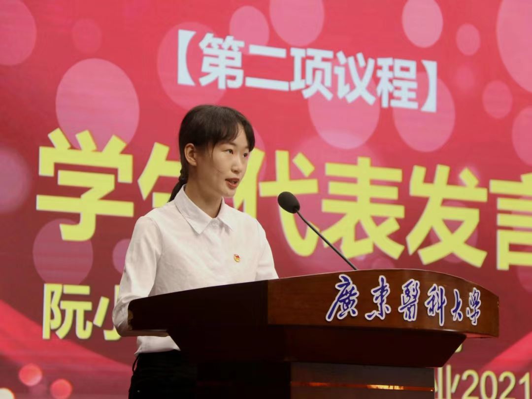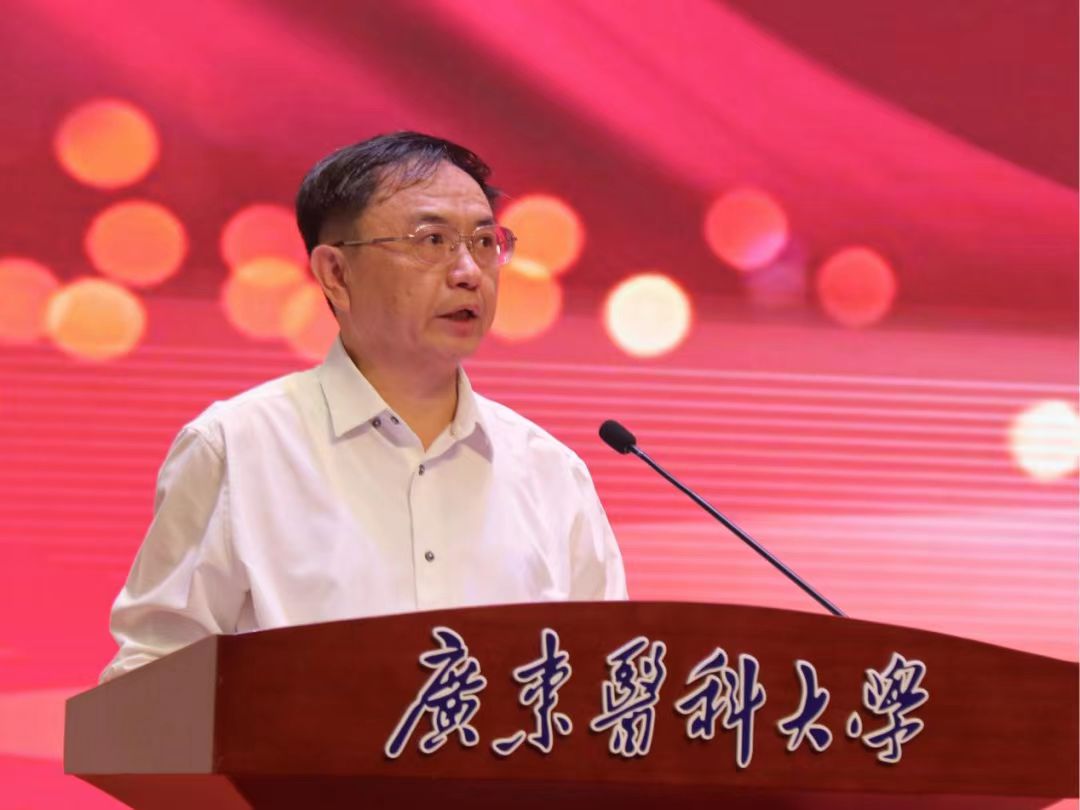 基础医学院生理教研室的吴洪福作为教师代表发言。他回忆起在广东医18年来,教书育人、帮助学生成长成才的经历,表达对领导、老师和学生的感恩之情。他表示,将要在广东医育人大舞台上,继续书写不负时代、不负人民,不负学校、不负学生的壮丽篇章,为打造中华民族“梦之队”作出更大贡献。