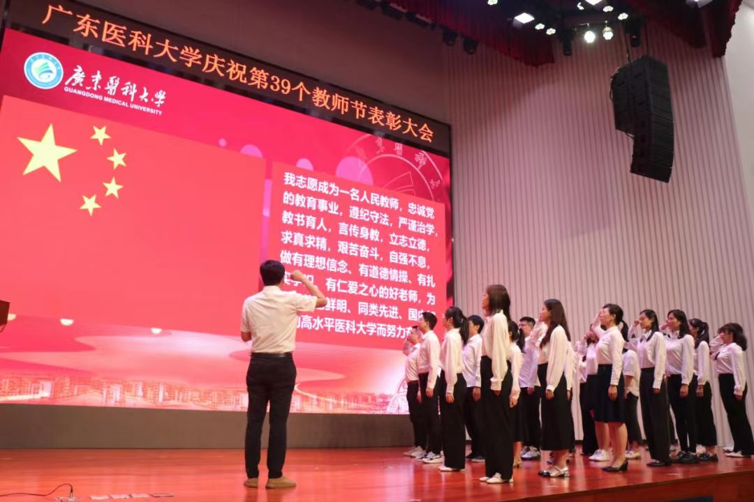 卢景辉表示,强国必先强教,强教必先强师;教师是立校之基、发展之源,是建设高水平大学的重要依靠和宝贵财富。他强调,全面建成高水平大学是广东医的奋斗目标。实现这个目标,我们比任何时候都更需要培养造就一支政治素质过硬、业务能力精湛、育人水平高超的高素质教师队伍,更需要涌现一大批潜心教书育人的好老师和有大学问、大格局、大情怀、大境界的大先生。