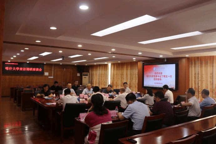 9月26日下午,喀什大学党委书记丁邦文一行来新葡萄开展调研交流,座谈交流会在东莞校区第一会议室召开。