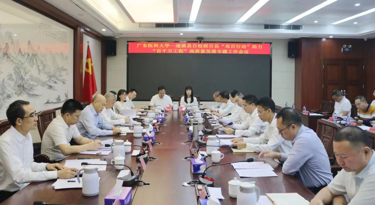 为推进广东省百校联百县助力“百县千镇万村高质量发展工程”行动高效落地落实,2023年10月11日,新葡萄8883官网党委书记、校长卢景辉一行到湛江市遂溪县召开百校联百县“双百行动”助力“百千万工程”专题工作会议。遂溪县委书记骆华庆,县领导沈东宇、朱帝池、朱锐、黄少娥等参加会议。