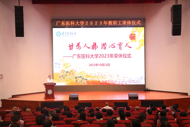 希望各位荣休教职工继续保持好心态,继续关心关注国家和社会的发展,继续为学校人才培养、科学研究、社会服务献计献策、发光发热、贡献力量。组织部门、人事部门、离退休部门、各基层党组织要用心用情关爱荣休教职工,要积极主动为学校、师生和退休教职工搭建起沟通的桥梁。广大青年教师要以荣休前辈为榜样,解放思想、攻坚克难、创新实干,秉持“立志立德、求真求精”“艰苦奋斗、自强不息”之精神,主动肩负起“兴医强医、守护健康”“立德树人、为党育人”的责任使命,努力成为塑造学生品格、品行、品味的“大先生”,做让党和人民满意的“四有”好老师,把在各位前辈同事努力下取得今天学校发展的成就继续推进好,将学校发展建设更越来越好,不辜负一代代广东医人的期望。