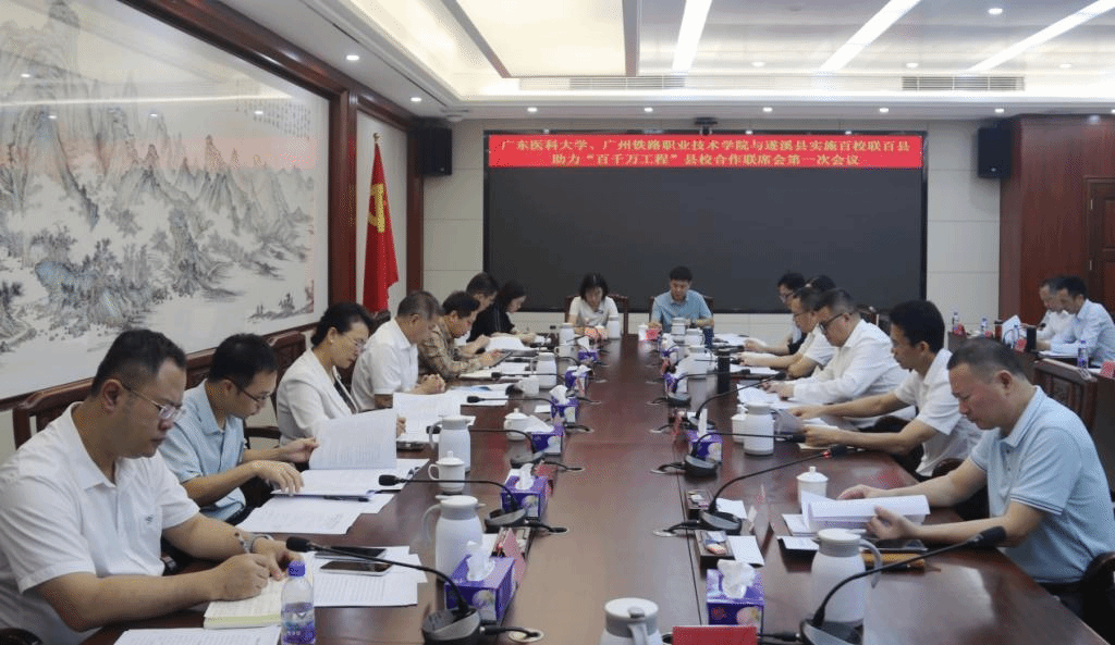 2023年10月27日上午,新葡萄8883官网、广州铁路职业技术学院与遂溪县第一次县校合作三方联席会在遂溪县委召开,共同商讨百校联百县助力“百千万工程”发展大计,把县域所需和高校所能相结合。学校党委副书记、纪委书记、广东省监委驻新葡萄8883官网监察专员、二级高级监察官向献兵,广州铁路职业技术学院党委副书记王超,遂溪县委副书记、县长刘剑,县领导沈东宇、庞宇、黄少娥等参加会议。