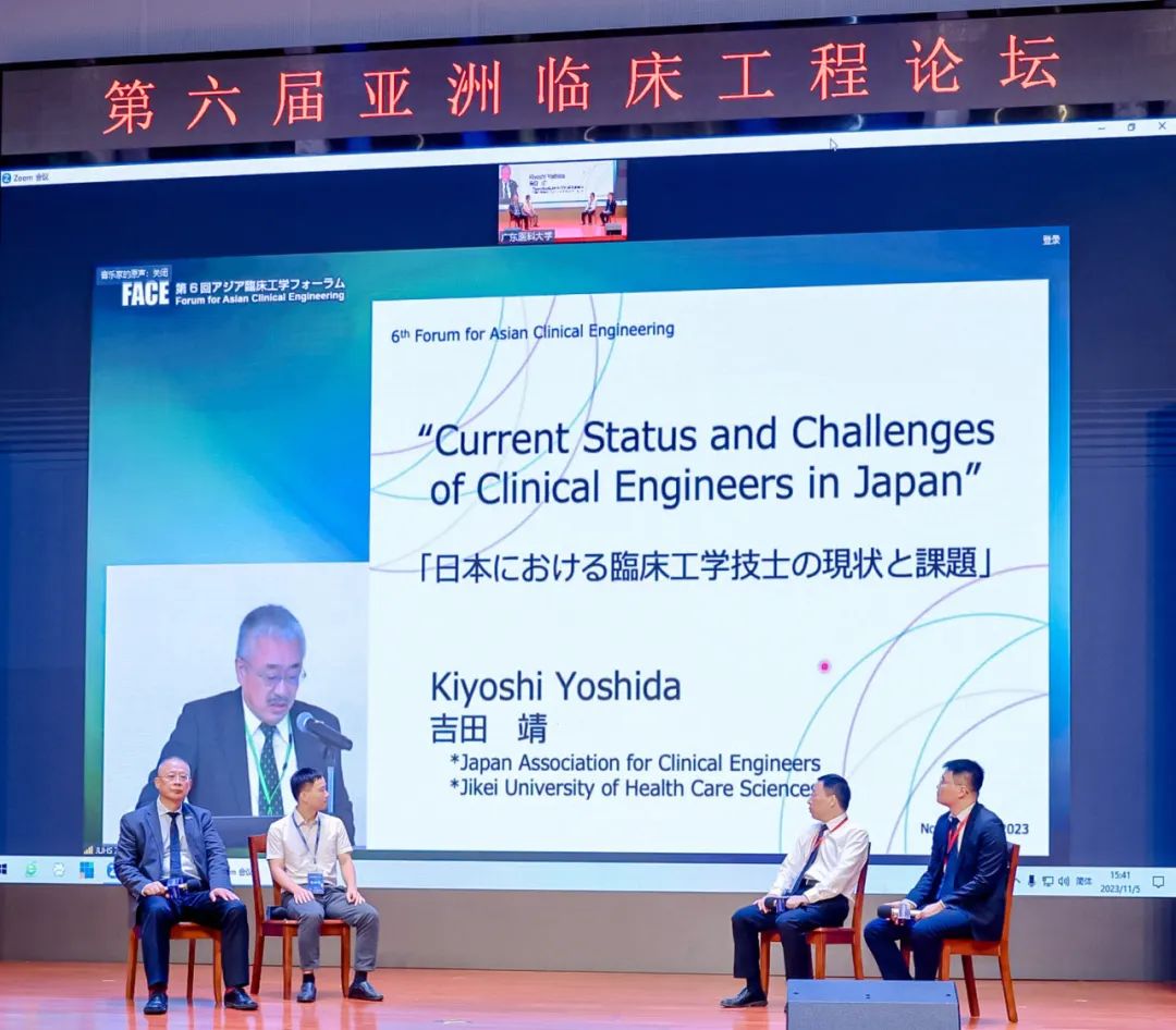 在报告环节中,来自中国、日本、孟加拉国、缅甸、尼泊尔的12位专家就亚洲各国的临床工学——临床工程人材培养方面的现状与课题以及亚洲各国的BME与CE的融合发展及对医疗制度的贡献进行深入讨论。其中,北京航空航天大学生物与医学工程学院副院长郑丽沙、深圳大学医学部生物医学工程学院院长陈昕、前海人寿广州总医院医学装备部主任何仕辉、上海健康医学院临床工程技术专业主任陈正龙、四川大学华西医院医学工程处处长刘麒麟、南方医科大学卫生与健康管理研究院弓孟春特聘研究员、珠海市人民医院医疗集团副院长彭永军等在现场进行报告。