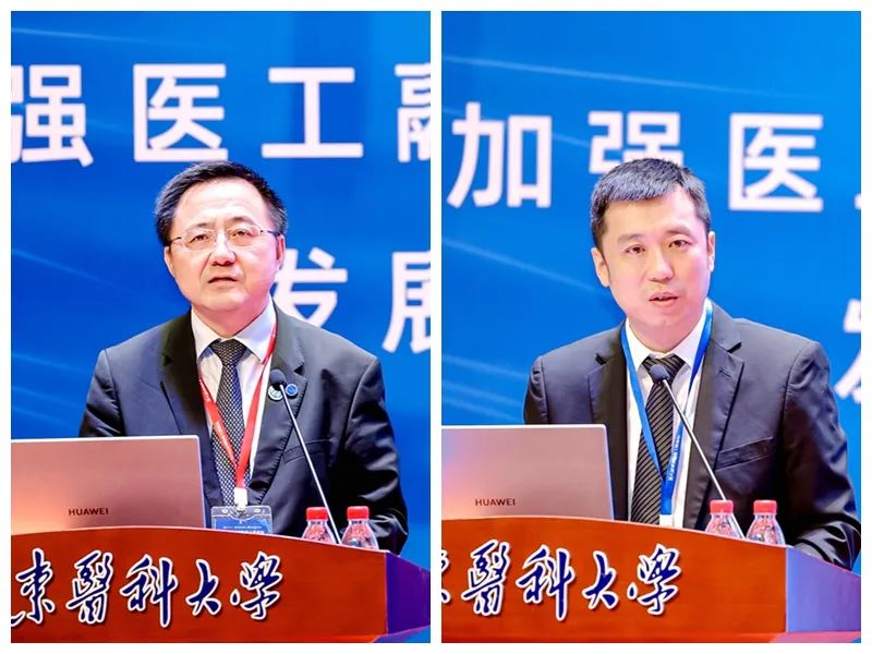 上海交通大学附属第六医院教授级高级工程师、中华医学会医学工程学分会主任委员李斌(左);新葡萄8883官网生物医学工程学院院长林林(右)。