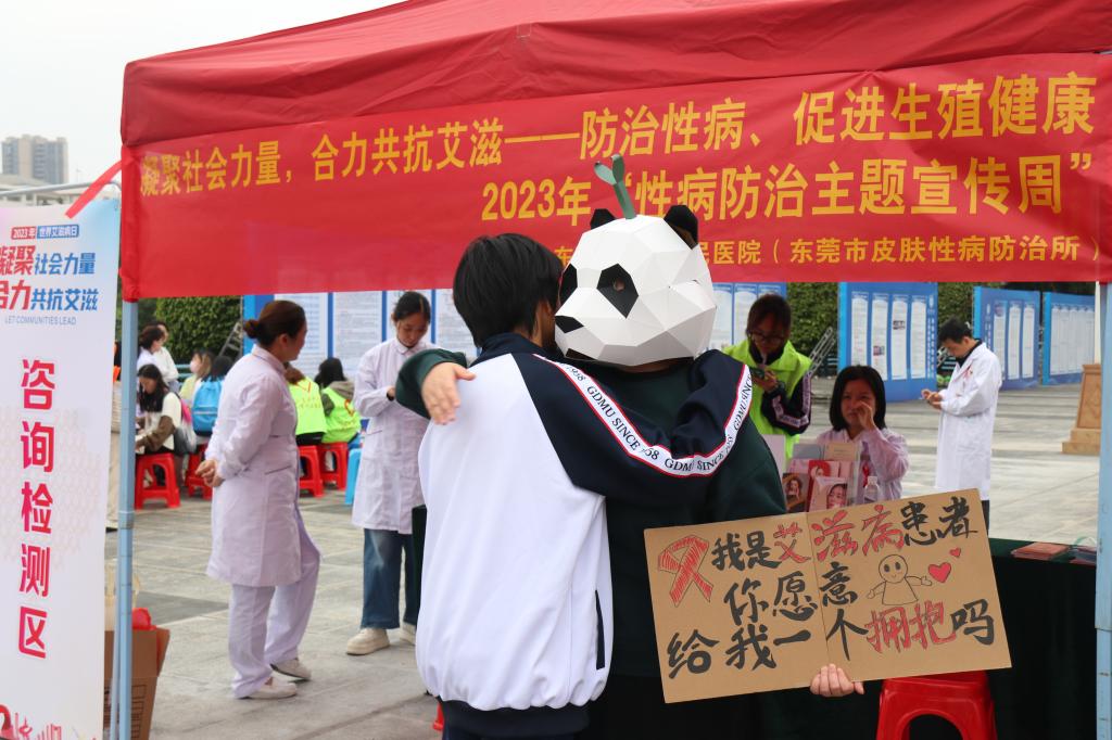 为深入贯彻党的二十大精神和习近平总书记关于艾滋病防治工作的重要指示精神,进一步提高全民对艾滋病防治知识知晓率;为宣传艾滋病防控知识,树立正确的健康生活理念,12月1日,由东莞市公共卫生与重大疾病防治工作领导小组办公室主办,松山湖高新技术产业开发区防治艾滋病工作委员会、新葡萄8883官网承办的以“凝聚社会力量,合力共抗艾滋”为主题的宣传活动在新葡萄举行。
