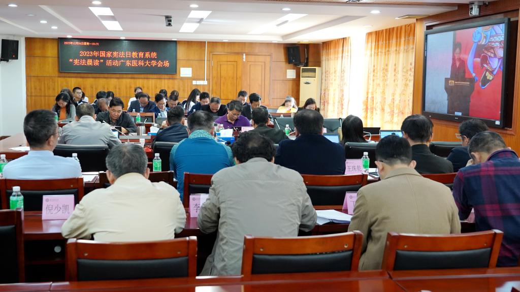 2023年12月4日是第十个国家宪法日。为弘扬宪法精神,坚定宪法信仰,增强师生法治观念,普及宪法知识,在国家宪法日来临的当天上午,学校师生代表在两校区第一会议室开展2023年国家宪法日教育系统“宪法晨读”活动。