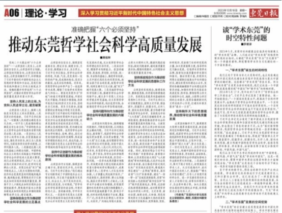 《东莞日报》18日理论版头版以《准确理解“六个必须坚持” 推动东莞哲学社会科学高质量发展》题目刊登了黄祖辉教授发言的主要观点。(文/马克思主义学院供稿 审核/黄祖辉 复核/周圆 终审/冯锦山)