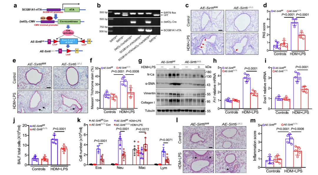 支气管哮喘(简称哮喘)是严重危害人类健康的慢性气道炎症性疾病。我国最新流行病学调查表明:20岁及以上的哮喘患病率为4.2%。气道重塑是重症哮喘的重要病理特征,临床治疗棘手,但其发病机制仍未阐明。因此,针对哮喘发病机制、新的生物标志物及潜在干预靶点的研究亟待突破。赖天文教授团队研究成果首次揭示了SIRT6调控IL-17A致病性在哮喘气道炎症反应及气道重构中的作用机制,提示靶向SIRT6是哮喘的潜在治疗靶点。