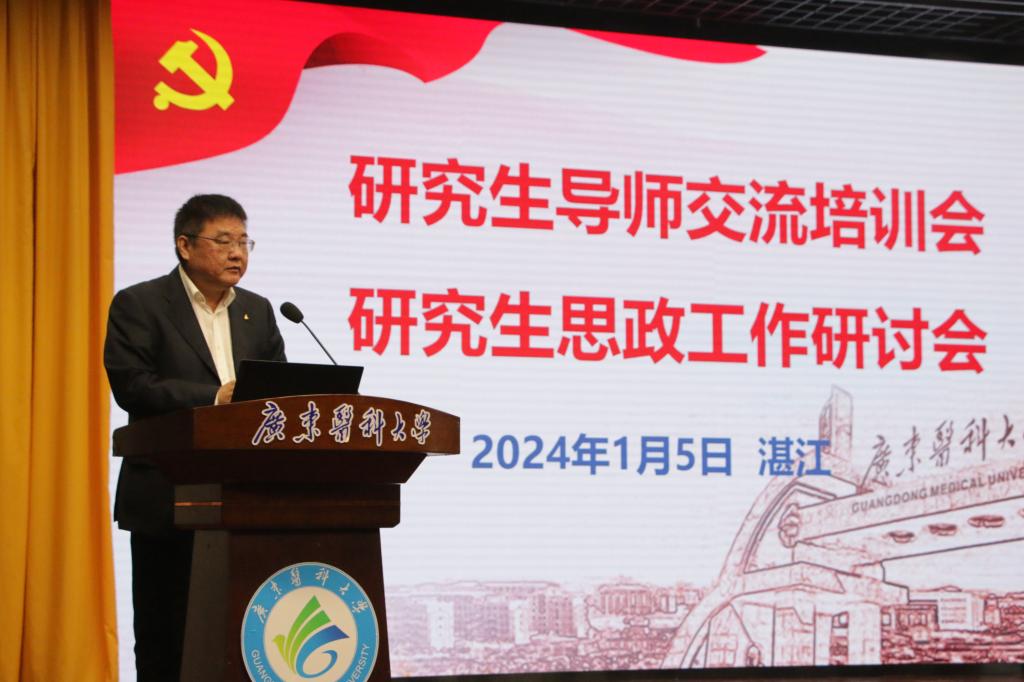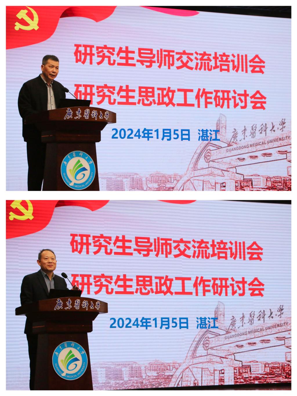 1月5日至6日新葡萄在湛江校区举办研究生导师交流培训会和研究生思政工作研讨会。本次活动由研究生院联合新葡萄8883官网附属第二医院共同主办。学校党委常委、副校长邝卫红出席会议并发表讲话。