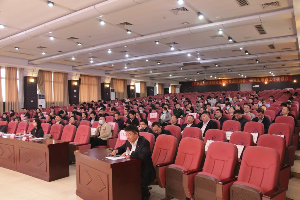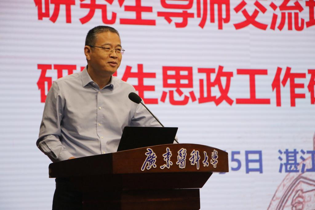 公共卫生学院唐焕文院长,妇儿医学院、附属第二医院张良清院长,研究生院彭浩晟、黄遵楠、肖维威副院长出席会议;校本部及湛江、茂名、阳江、江门、中山、珠海、肇庆、佛山等各研究生培养基地(培养点)150余名新遴选的研究生导师参加了导师培训交流会;校本部各研究生教学单位的领导、辅导员和各研究生培养基地(培养点)的研究生管理人员80余人参加了思政工作研讨会。开幕式由黄遵楠主持。