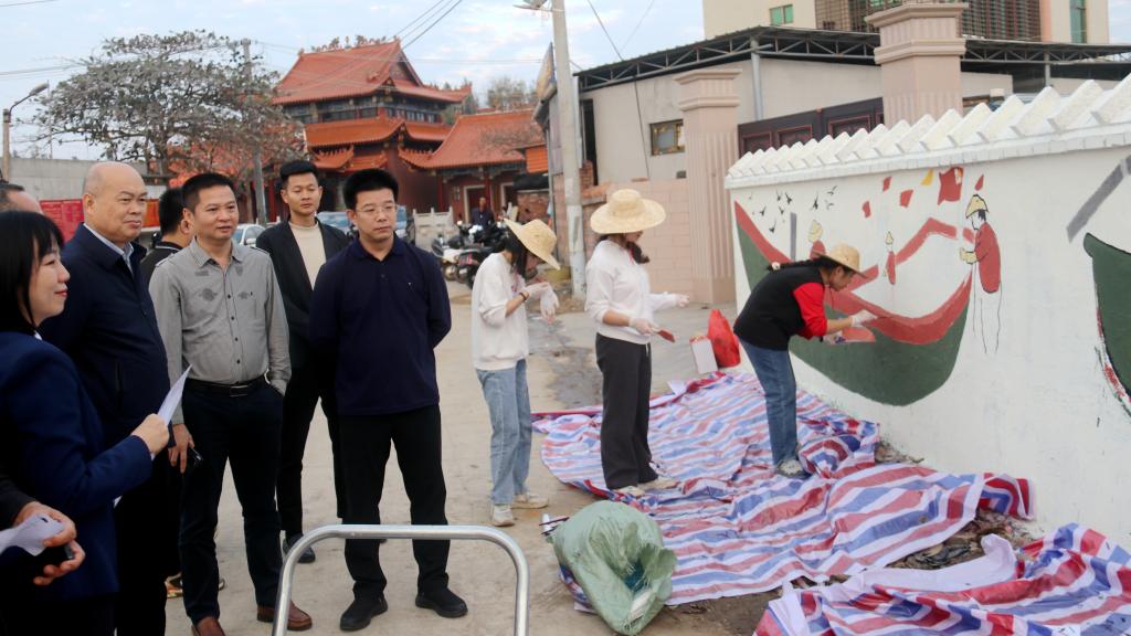 为助力绿美广东生态建设,促进农村环境风貌提升、增强乡村文化内涵,在镇政府的邀请和工作队协调沟通下,15名新葡萄学生在寒假第一天来到乡村参与墙绘设计和施工。卢景辉深入水尾村,看望慰问正在开展寒假墙绘实践活动的学生们,赞扬了学生们的绘画技艺和吃苦耐劳的优秀品质,勉励他们努力为绿美广东、绿美乡村做贡献,并为学生们送上慰问品。