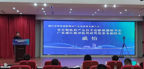 新葡萄湛江市生物医药产业技术联盟秘书长戚怡同志围绕湛江市生物医药产业技术创新联盟整合生物医药行业资源,构建“政产学研用”为一体的产业创新发展平台做了发言。