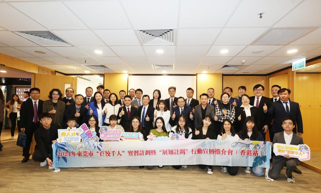 在香港城市大学,东莞市“百校千人”实习计划暨“展翅计划”行动推介交流会(香港站)在香港城市大学开展,向广大香港高校学子展现东莞全新城市形象及人才招引诚意。活动现场,东莞市委组织部副部长姚家庆向参会的香港高校代表和学子们发出诚挚邀请,欢迎香港各高校的大学生到东莞实习、就业。