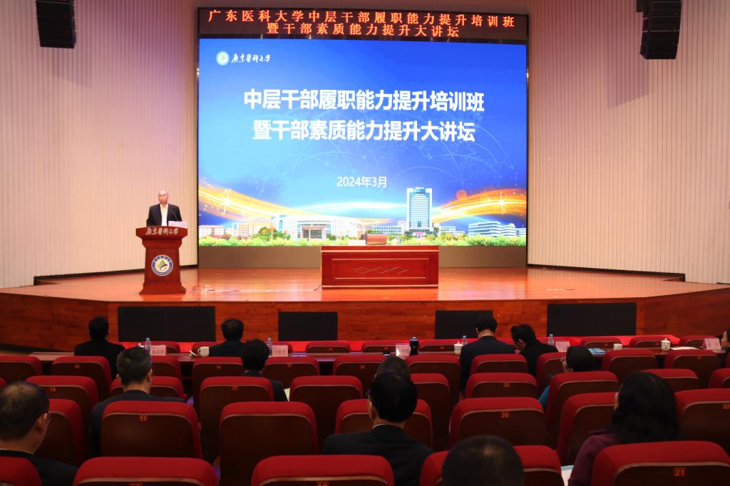 3月12日,在全国两会刚刚闭幕,全党全国深入学习贯彻习近平总书记重要讲话精神和全国两会精神之际,学校中层干部履职能力提升培训班开班。学校特邀请徐州医科大学原党委书记吴永平教授做客新葡萄“中层干部履职能力提升培训班暨干部素质能力提升大讲坛”,吴永平教授以《地方高校高质量发展的实践与思考》为题作专题辅导报告。学校党委书记、校长卢景辉作题为《加强新时代党的创新理论武装,当好推动高水平医科大学建设的坚定行动派、实干家》的开班动员,全体在校领导,两委委员、中层干部、全体辅导员等300余人聆听报告。