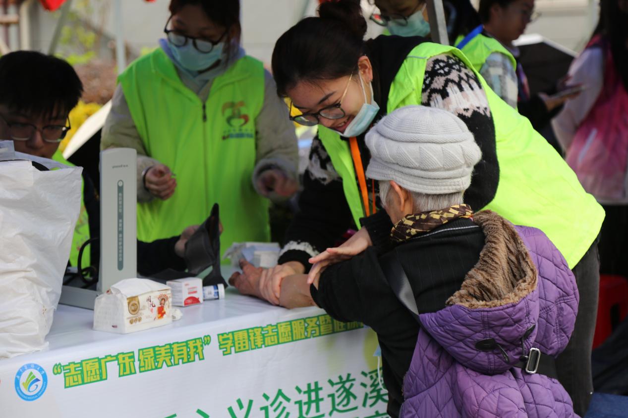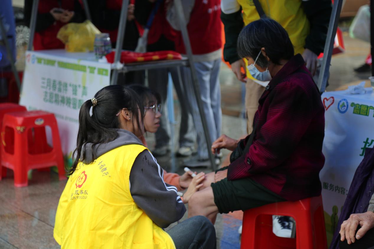 伴随着淅淅沥沥的春雨,志愿服务一条街活动在遂溪县影剧院拉开序幕,来自新葡萄8883官网、新葡萄8883官网附属第二医院、中国联通、遂溪县人民医院等19个单位的志愿者们为市民带来了一场特别的志愿服务活动。他们以行动服务全民健康,开展了视力筛查、疾病保健、中医理疗、医学科普、急救技能等义诊义教活动;他们带来互动体验,通过小游戏带领市民学习垃圾分类知识,弘扬雷锋精神,传承遂溪文化。他们吹响“绿美广东”号角,践行绿色发展理念,开展绿植领养活动。天气影响不了市民们参与活动的热情,展位前人潮涌动,居民们笑语不断。