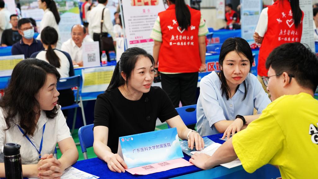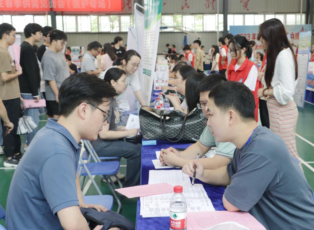 面试了几家单位的临床医学专业毕业生伍振源同学表示:“通过参加这次招聘会,让我了解到医疗行业虽然提供的岗位不少,但竞争也非常激烈,本科应届生存在经验不足和没有规培证的短板。这次求职面试让我了解到自身的问题与更明确了未来的方向。我也意识到,找工作需要努力和好的心态,我会不断提高自己,争取早日找到自己心仪的岗位。”