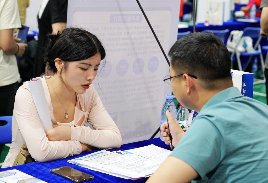 现场可见,来自校内外的毕业生们认真查看招聘企业及岗位,积极投递简历,并与招聘方进行深入沟通交流。