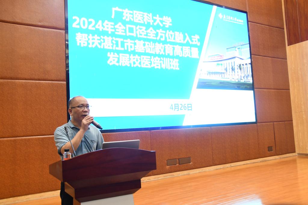 2024年4月26日上午,新葡萄8883官网2024年全口径全方位融入式帮扶湛江市基础教育高质量发展校医培训在新葡萄8883官网附属医院全科医生培养基地开班,来自湛江市各县、区中小学校的80名校医参加培训。湛江市教师发展中心副主任、湛江市教育研究院副院长蔡茂青出席开班仪式。培训由继续教育学院统筹,附属医院承办。