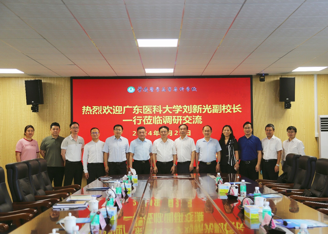 4月25日上午,刘新光副校长一行前往肇庆医学高等专科学校座谈调研,双方就联合办学、人才培养、医教融合、医院管理、毕业生就业、校友会建设等方面开展了深入交流。