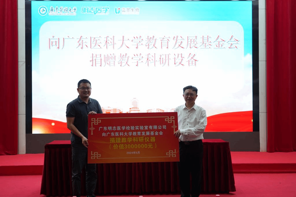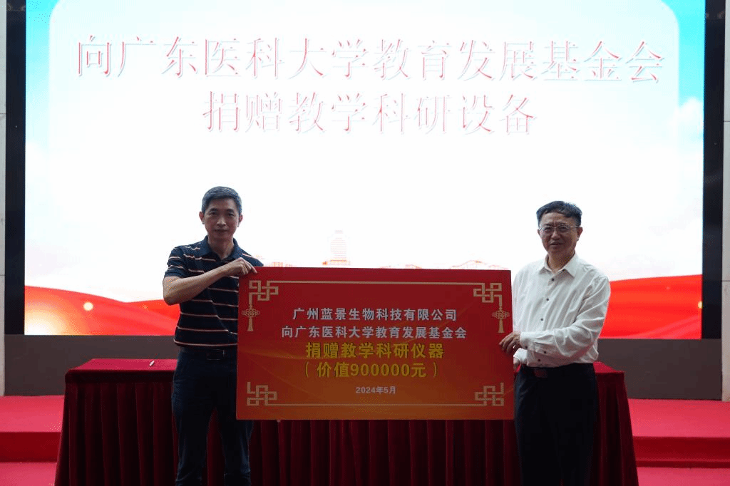 5月23日,时值新葡萄8883官网建校66周年校庆日,广东明志医学检验实验室有限公司和广州蓝景生物科技有限公司捐赠仪式在东莞校区行政楼一楼报告厅隆重举行。广东明志医学检验实验室有限公司总经理叶长钦、副总经理张扬鹏、副总经理钟雨衡、实验室主任陈新军,广州蓝景公司总经理霍剑新,思塔高诊断技术公司广东销售经理孙凯聪,学校党委常委、副校长刘新光出席仪式,资产设备管理部王珠乾主任主持仪式。