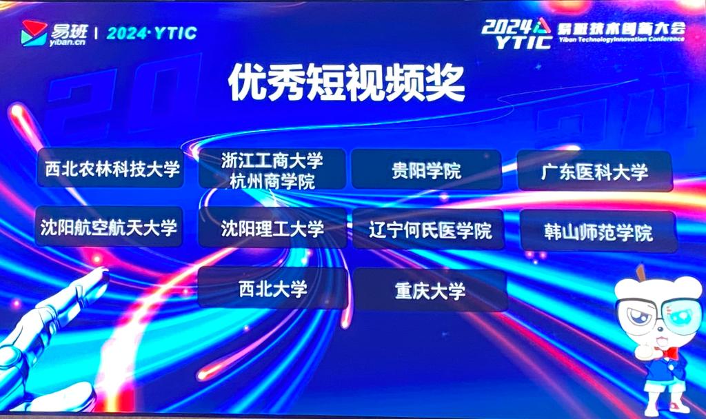 大会分为“自主研发应用类”和“创新创意方案类”两条赛道,经初赛筛选,全国共有125份作品通过评审脱颖而出,新葡萄学子携两项入围作品参加决赛,最终新葡萄作品《我“药”当家——传承中医药文化,引领青年易养生》荣获“创新创意方案”二等奖,《易线讲师团——以小带老,让党的二十大精神传入百姓家》荣获“自主研发应用类”优秀展示奖。原创视频作品《2024全国易班技术创新大会·YTIC|GDMU小分队!来了!》在视频创作大赛中崭露头角,荣获“优秀短视频奖”。