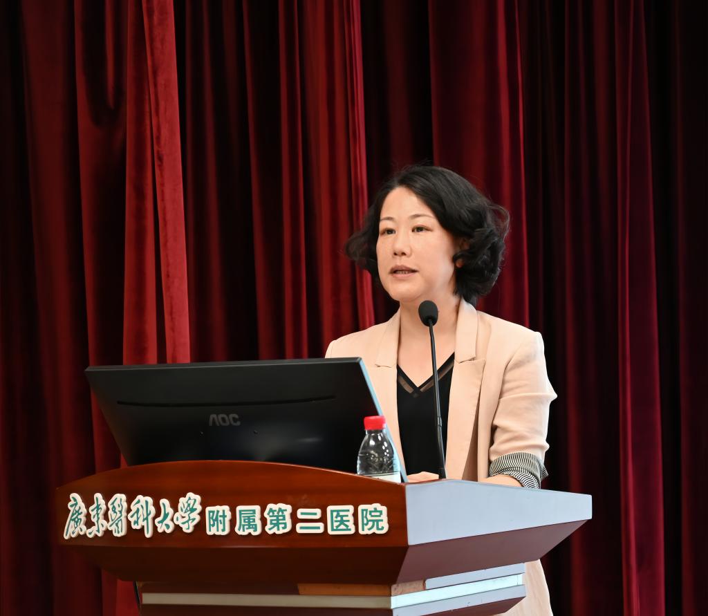 湛江市人民政府副秘书长刘志红受何嘉旻副市长委托,代表湛江市政府对各位专家的辛勤付出表示衷心的感谢和崇高的敬意,对广东医附二院三级医院等级评审现场评审的顺利开展表示热烈的祝贺。她指出,广东医附二院始终以坚守人民健康为己任,守候湛江乃至粤西人民健康,在粤西地区享有很高的声誉与群众基础。“创三甲”工作是医院全体员工的梦想,是大学直属附属医院的使命,更是健康湛江的需要,湛江市政府也高度重视广东医附二院的等级评审工作,全力支持广东医附二院开展标准化建设。她希望广东医附二院以此次评审为契机,一要提高政治站位,全面落实整改措施。认真梳理问题和意见,建立台账、罗列清单、责任到人、落实整改,用实实在在的举措,确保件件落地;二要不断强化内涵,把短板变成潜力板。持续提升医疗质量和服务水平,切实提高人民群众看病就医获得感,推动医院发展实现跨越;三要全面提升服务能力,推动医院高质量发展。全力推进现代医院建设和管理,把医院高质量发展各项任务落到实处;四要发挥大学附属医院优势,辐射带动区域发展。发挥龙头带动作用,带动引领各级医疗机构提升医疗救治能力,加快建设成为特色鲜明、若干学科区域一流的高水平大学直属附属医院,为构建更加健康、美好的湛江贡献力量。
