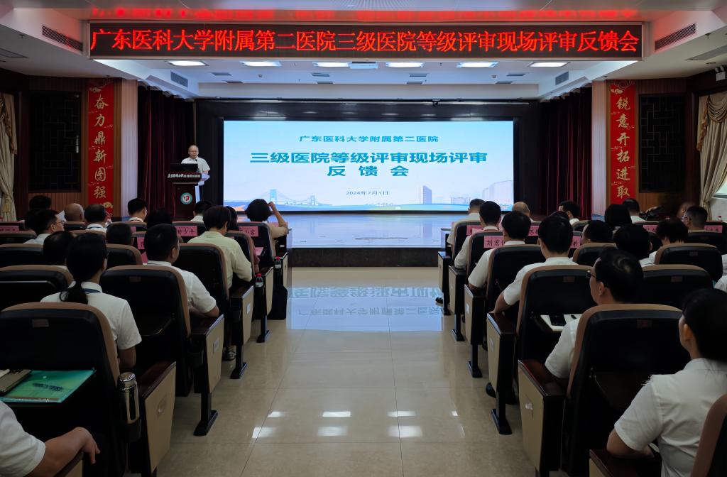 “新葡萄8883官网附属第二医院三级甲等综合医院现场评审顺利通过!”7月1日上午,广东省卫生健康委党组成员、副主任汪洪滨在反馈会上郑重宣布。经过三天高标准、严要求的评审检查,专家组对三级医院等级评审现场评审情况进行集中反馈,对取得的成绩给予充分肯定,对医院领导班子的高度重视和全院员工的有力执行予以高度评价,并分别就评审期间医院的工作亮点、存在问题及改进建议等方面作反馈报告,并针对评审过程中发现的不足之处提出了宝贵的意见与建议,为医院的事业发展和持续改进指明了方向。
