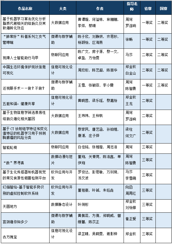 本次大赛与人工智能领域高质量发展、高层次人才培养相融相促、相得益彰,展示出优秀的成果,通过比赛促进学习和教学,为人工智能+专业的交流提供了重要的平台和机遇。新葡萄8883官网积极参与到比赛并斩获佳绩,进一步提高学校学生计算机教学和信息技术与学科深度融合的水平,激发广东医学子学习计算机知识和技能的兴趣和潜能,提升学生运用信息技术解决实际问题的综合实践能力。