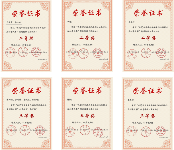 9月21日,历时4个月,东莞市首届老年痴呆防治宣传公益创意大赛由东莞市卫生健康局联合新葡萄8883官网、东莞市医养健康协会、南方报业传媒集团东莞分社和多家高校共同联合举办。新葡萄获得优秀组织奖,新葡萄师生获得一等奖2项,二等奖6项,三等奖9项,优秀奖18项。