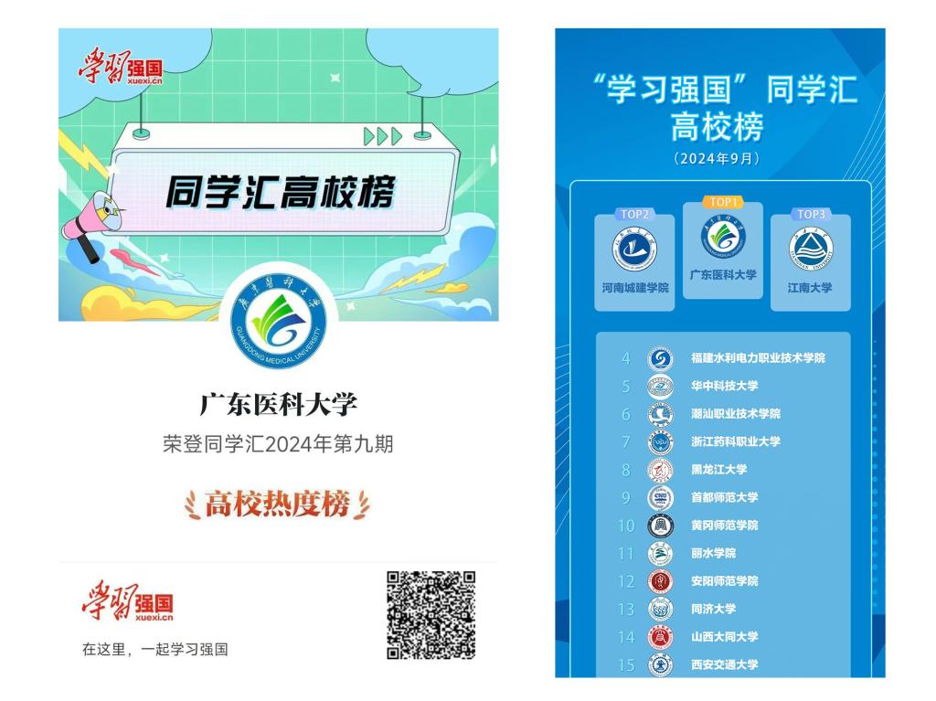 “学习强国”同学汇工作室日前发布2024年9月高校榜,新葡萄8883官网荣登“学习强国”同学汇高校热度榜第九期第一名。