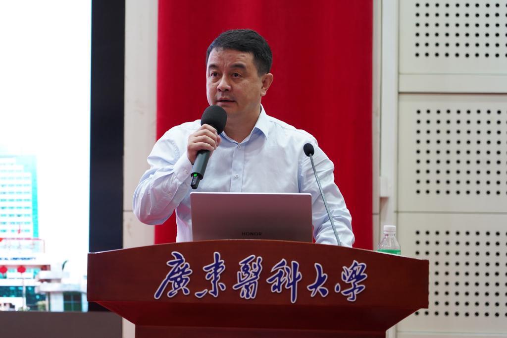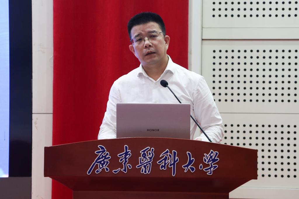干细胞与再生医学本科生创新创业教育基地负责人吴洪福教授在会上分享了基地建设的宝贵经验和显著成果。他从创新创业人才培养、基地建设实践、基础医学与临床医学的融合、企业与高校的产学研合作,以及科技创新促进科普教育等多个维度,为与会者提供了深刻的见解和有益的启示,为未来的基地建设和项目申报工作提供了具体的实践借鉴。盛创蜂巢董事长赖万里先生应邀在会上分享了“凝心聚创-做好创新创业的点、线、面”,从产业聚集打造、创新平台构建、人才载体形成三个维度,深入剖析了创新创业的最新趋势,对基地建设的顶层设计、路径分析和特色亮点提供了宝贵的指导意见。