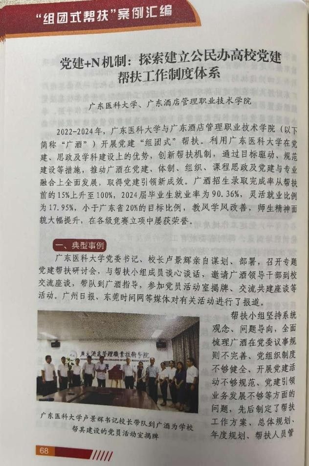 近日,中共广东省委教育工作委员会印发《公民办高校党建“组团式”帮扶工作典型案例》,新葡萄与广东酒店管理职业技术学院共同撰写的党建“组团式”帮扶工作典型案例《党建+N机制:探索建立公民办高校党建帮扶工作制度体系》成功入选。