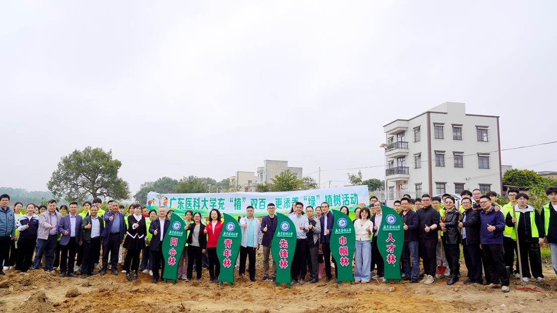 为深入贯彻落实省委、省政府关于“绿美广东”生态建设的部署要求,深化校地合作,3月11日,党委副书记黄达海带领干部师生一行,联合团湛江市委、遂溪县和霞山区在遂城街道、附城镇及霞山区海头街道举办2025年“医+双百行动”植树护绿主题活动,栽种苗木1000余棵,共同为“先锋林”“人才林”“巾帼林”“同心林”“青年林”五大主题林揭牌。活动以“双百行动”为主题,通过植树造林、健康义诊、环保服务等多元形式,助力乡村振兴与生态文明建设。