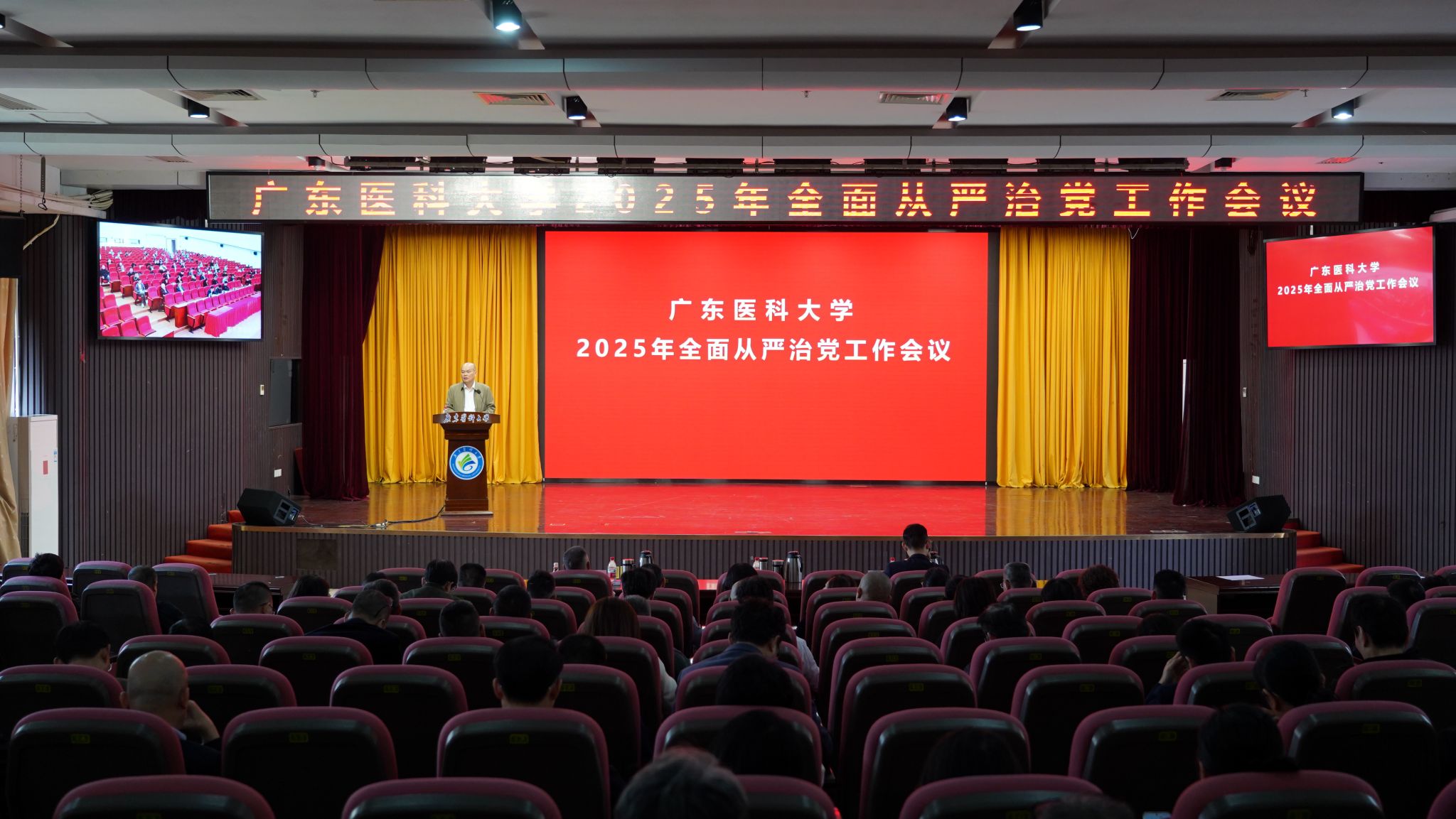 3月20日,学校召开2025年全面从严治党工作会议,学校党委书记、校长卢景辉作题为《坚持用改革精神和严的标准管党治党 以全面从严治党新成效引领保障学校高质量发展》讲话。学校党委副书记、纪委书记、广东省监委驻新葡萄8883官网监察专员、二级高级监察官向献兵部署纪检监察工作,学校党委副书记黄达海主持会议。学校领导、党委常委,两委委员,全体中层干部,各基层纪委书记(纪检委员),校本部七级、八级职员,全体辅导员参加会议。