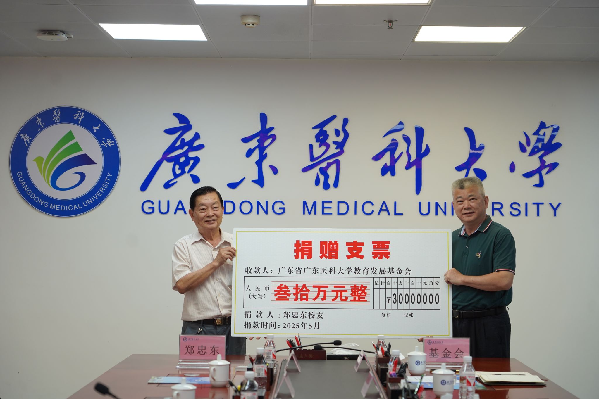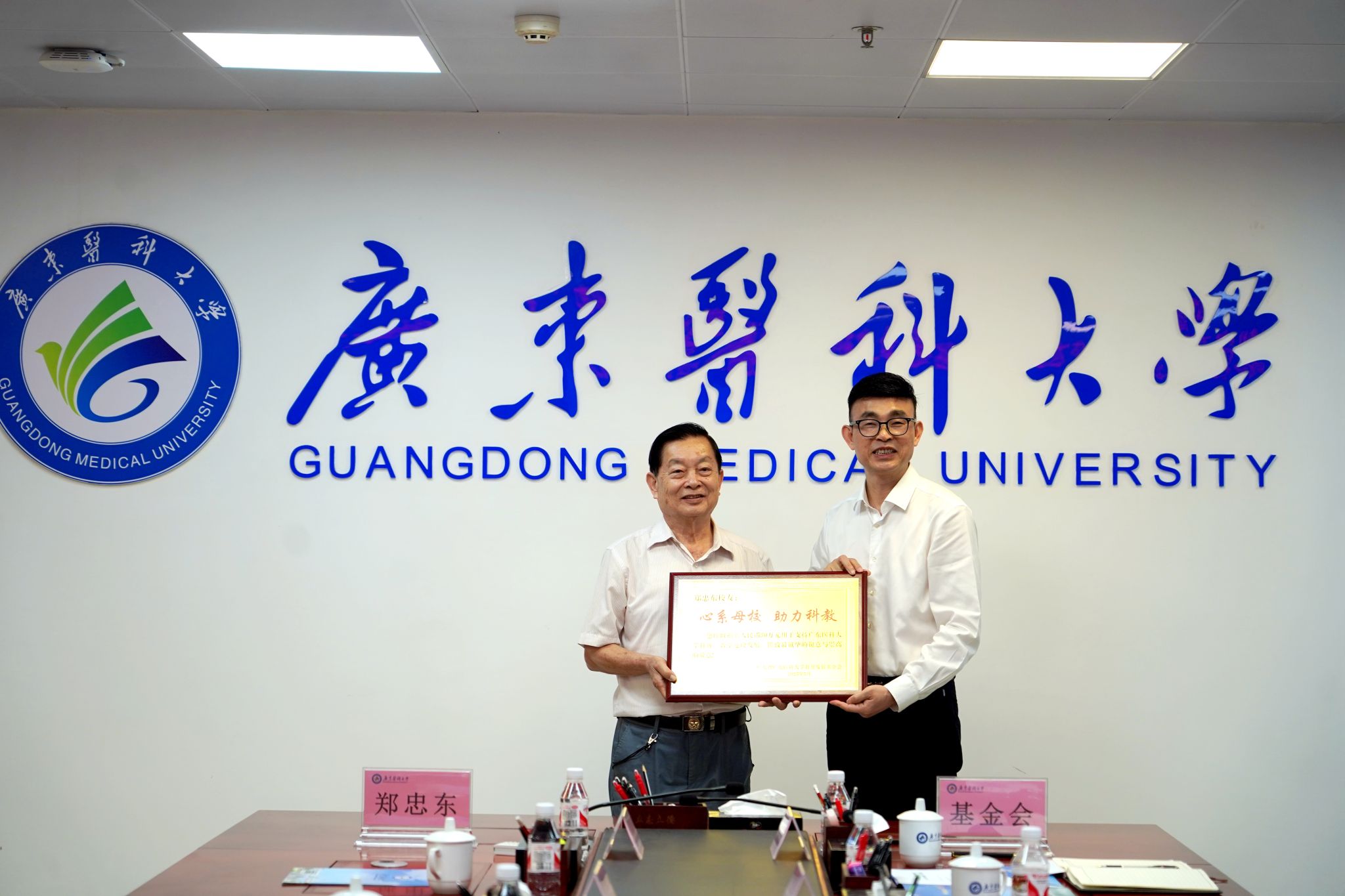 黄达海代表学校向郑忠东校友的慷慨捐赠致以诚挚谢意。他指出,在母校67周年校庆之际,郑忠东校友专程从海南返回湛江,捐赠30万元人民币支持教育事业,这一善举既是对母校的深情回馈,更是对“立志立德、求真求精”校训精神的生动践行。他强调,校友与社会捐赠是衡量大学办学实力的重要指标,新葡萄8883官网67年来的发展离不开广大校友的鼎力支持。学校始终坚持“人才强校”战略,聚焦高质量医学人才培养,未来将以70周年校庆为契机,搭建更广阔的校友交流平台,汇聚各方资源推动科研与教学创新。他郑重承诺,学校将严格按照捐赠意愿,将善款专项用于人才培养与学科建设,确保校友的爱心转化为推动学校发展的实际成效。