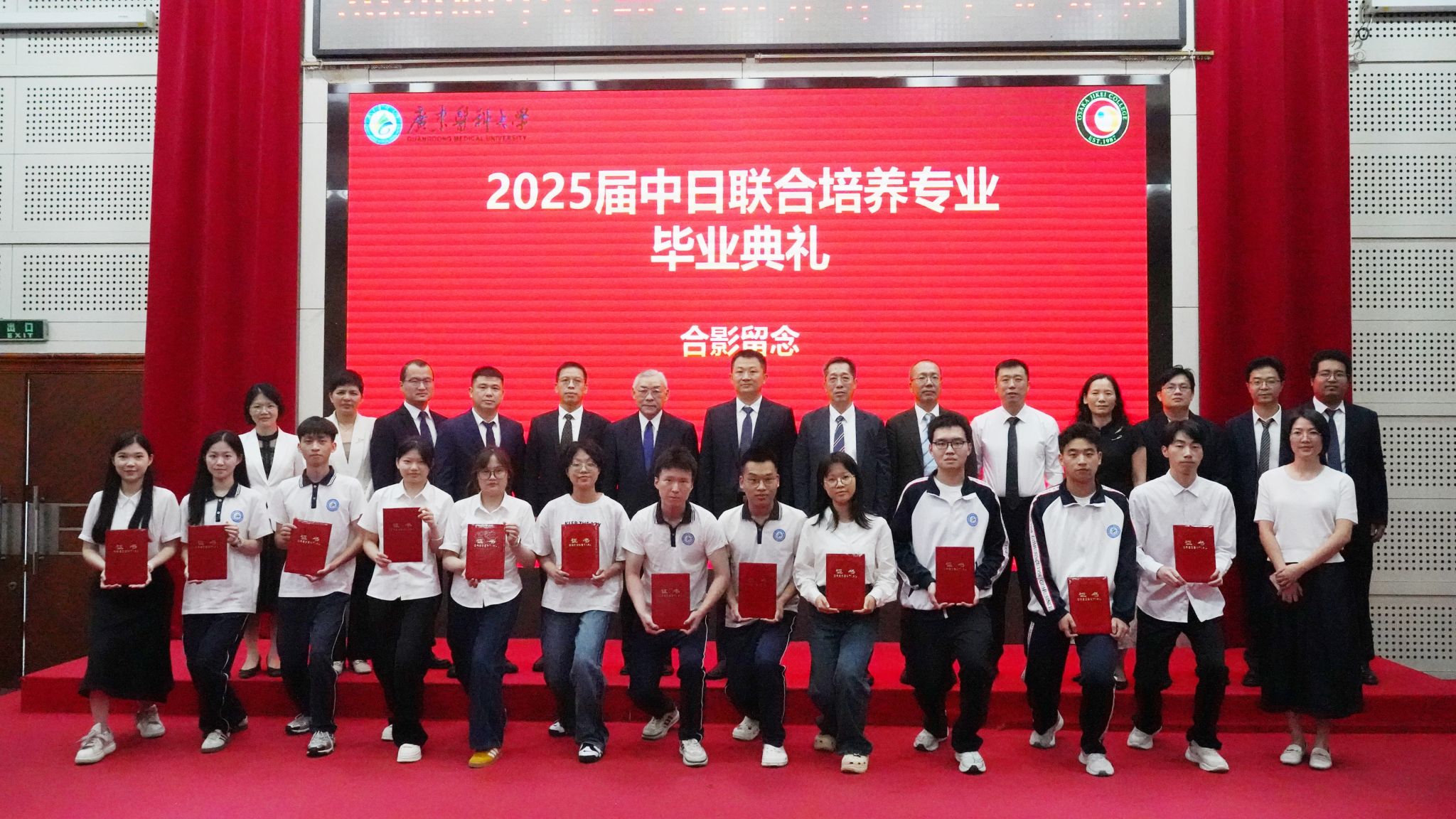 桥本胜信先生为2025届中日联合培养专业毕业生送上祝福,祝福全体毕业生在医学道路上“以知促行、以行求知”,在中日医学交流中书写兼具专业深度与实践价值的人生新篇章。桥本胜信先生同时饱含深情地指出,新葡萄8883官网作为大阪滋庆学园在中国设立联合培养专业的首所高校,两校自1996年开始合作,迄今已有29年。合作期间,双方开展了各类中日医学教育交流与研修活动,有效促进了两国青年人的沟通了解,也大大拓宽了双方学生的国际化视野。欢迎新葡萄8883官网毕业生赴日本攻读“医疗安全管理学”硕士学位,继续在医学领域精进专业、渊博学识。未来两校将进一步拓展更深层次的交流合作项目,为社会培养更多高水平、国际化的医疗卫生人才。