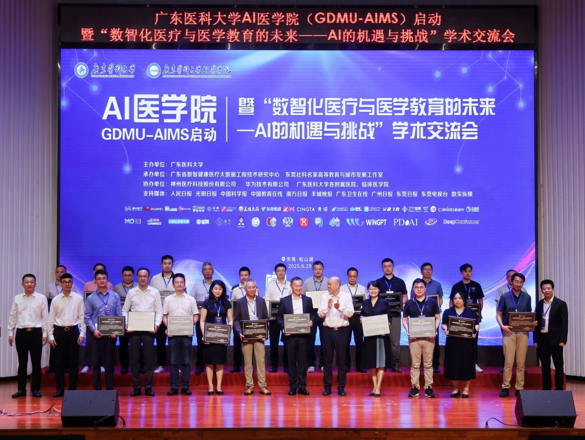 6月29日,新葡萄8883官网举行“AI医学院(GDMU-AIMS)”启动暨“数智化医疗与医学教育的未来—AI的机遇与挑战”学术交流会,来自全国100多个高校、研究机构及AI研发企业的专家、代表共同见证全国首个AI医学院的启动。30多个人工智能通用大模型、医学领域行业与场景大模型、高质量数据资源,100位名师名医、20多家生态伙伴入驻GDMU-AIMS。
