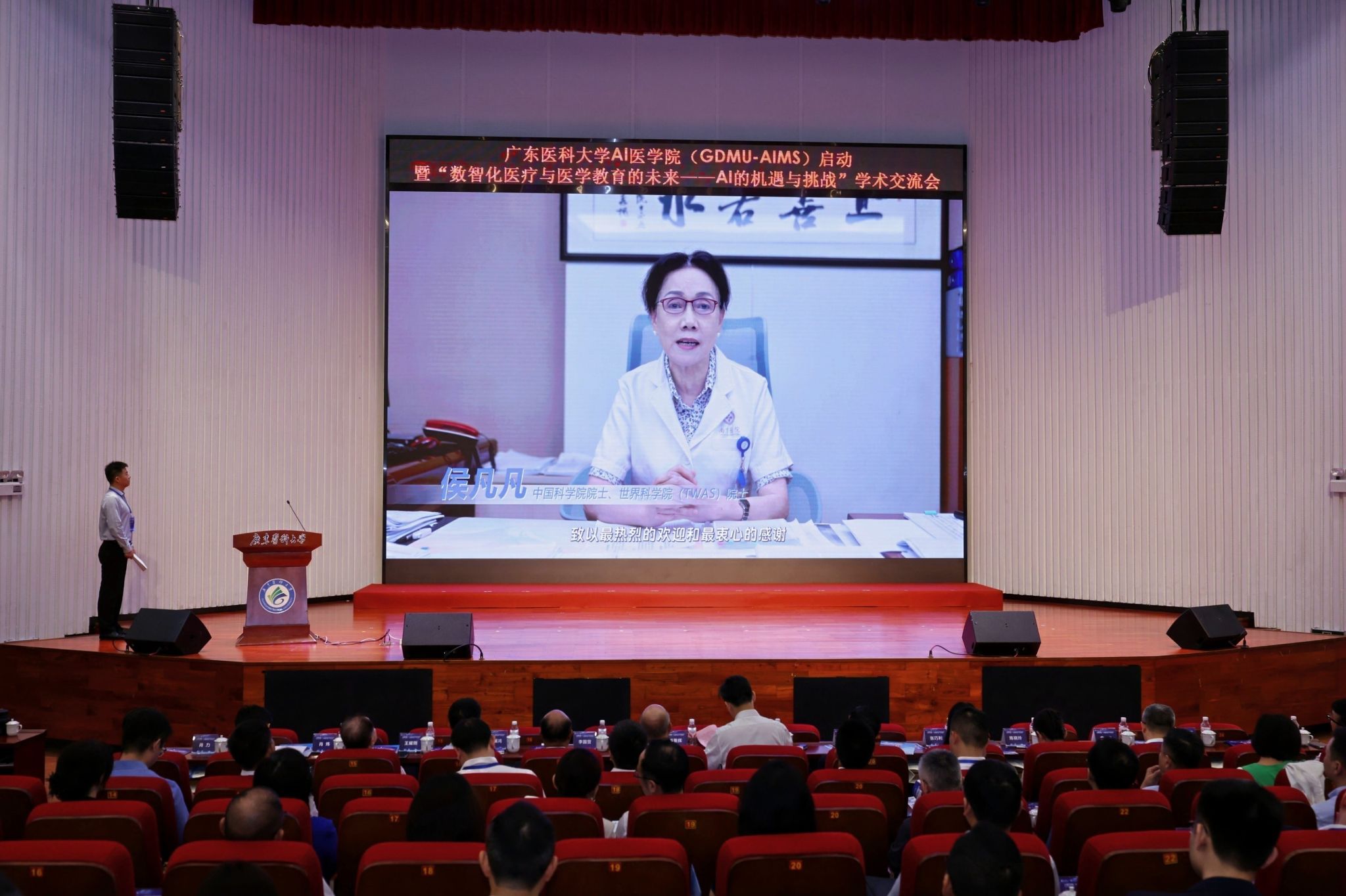 中国科学院院士、世界科学院(TWAS)院士侯凡凡视频致辞时表示,人工智能,特别是大模型技术,正以前所未有的速度融入医学、赋能医学、改变医学。新葡萄8883官网AI医学院的建设,让我们看到了一个全新的视野和模式,在网络空间打造、汇聚各类通用大模型和专病大模型,为医学大模型服务医学教育提供了一个全新的应用场景。这有助于培养未来医生的AI素养、并能通过AI提升医学教育质量,对大模型自身的训练和成长也极具价值。