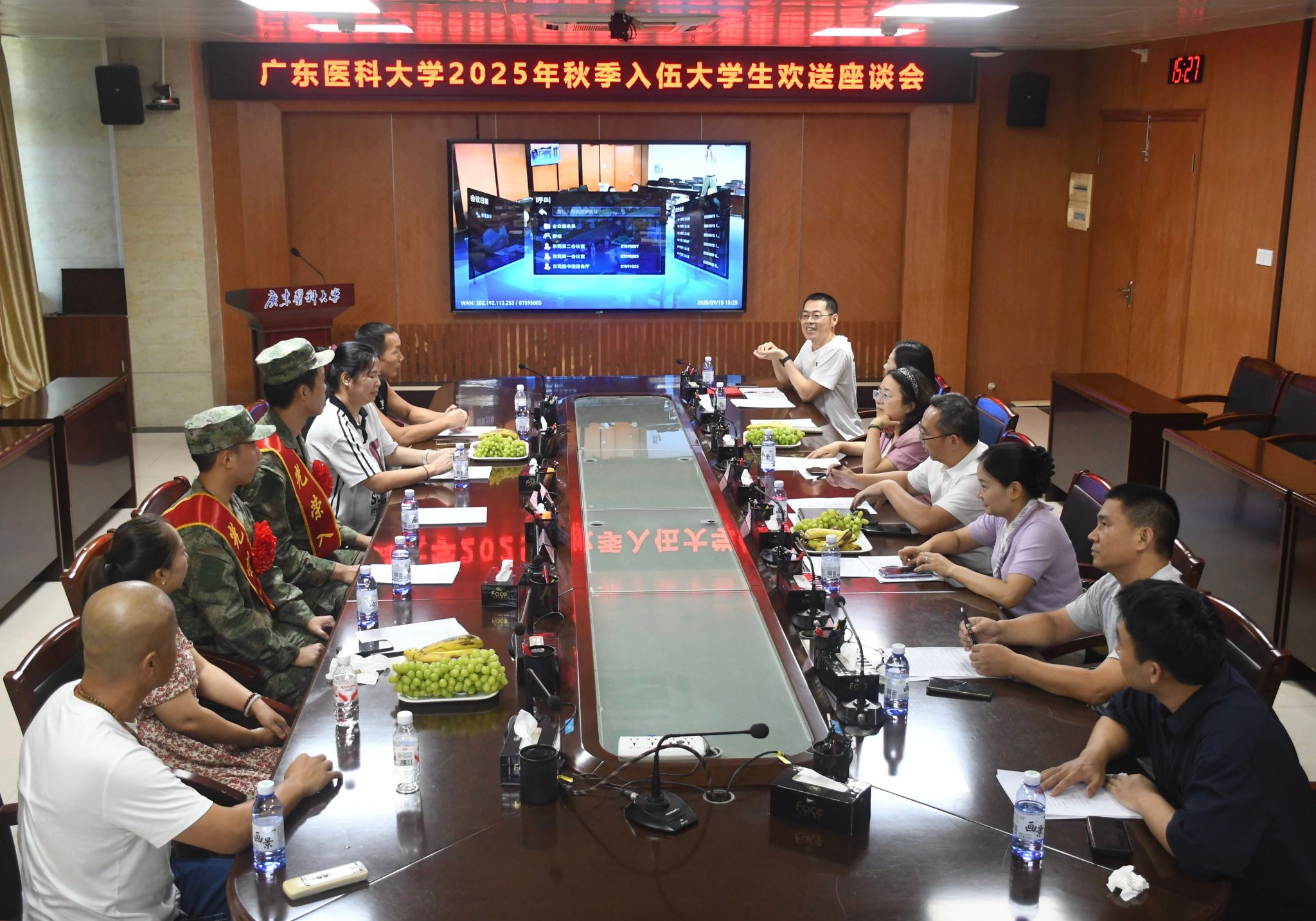 9月15日,新葡萄8883官网湛江校区2025年秋季入伍大学生欢送座谈会在综合楼九楼第二会议室举行,为即将踏上军旅征程的大学生士兵送上学校的关心与祝福。2025年全校共有25名大学毕业生应征入伍。
