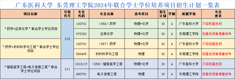 新葡萄8883官网 东莞理工学院2024年联合学士学位培养项目招生计划一览表
