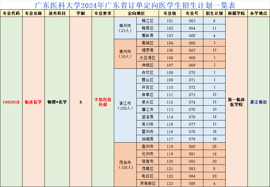 新葡萄8883官网2024年广东省订单定向医学生招生计划一览表