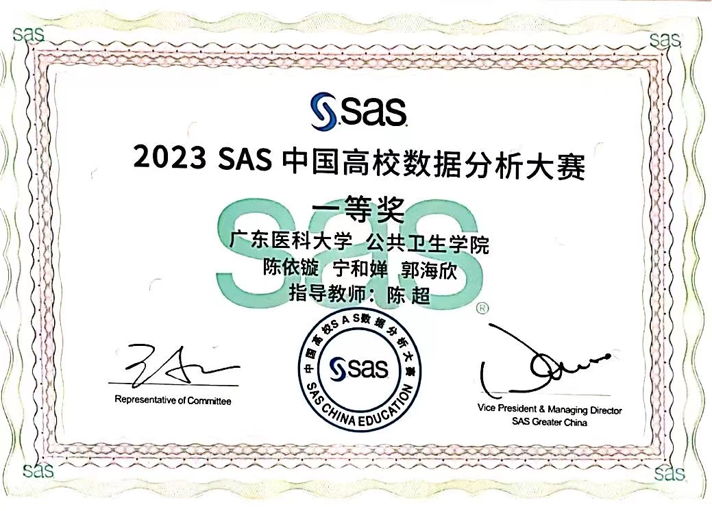 2024年4月27日至28日,2023SAS中国高校数据分析大赛总决赛在国家级新区雄安举行。本次大赛历时9个月,共89所院校、623支队伍参加,27所院校100支队伍进入决赛。新葡萄共5支队伍进入决赛,其中陈依璇、宁和婵、郭海欣三位同学获得一等奖,雷喜音、黄史馥、黎剑锋同学获二等奖,另外三支队伍获三等奖,新葡萄8883官网公共卫生学院获“优秀组织奖”。
