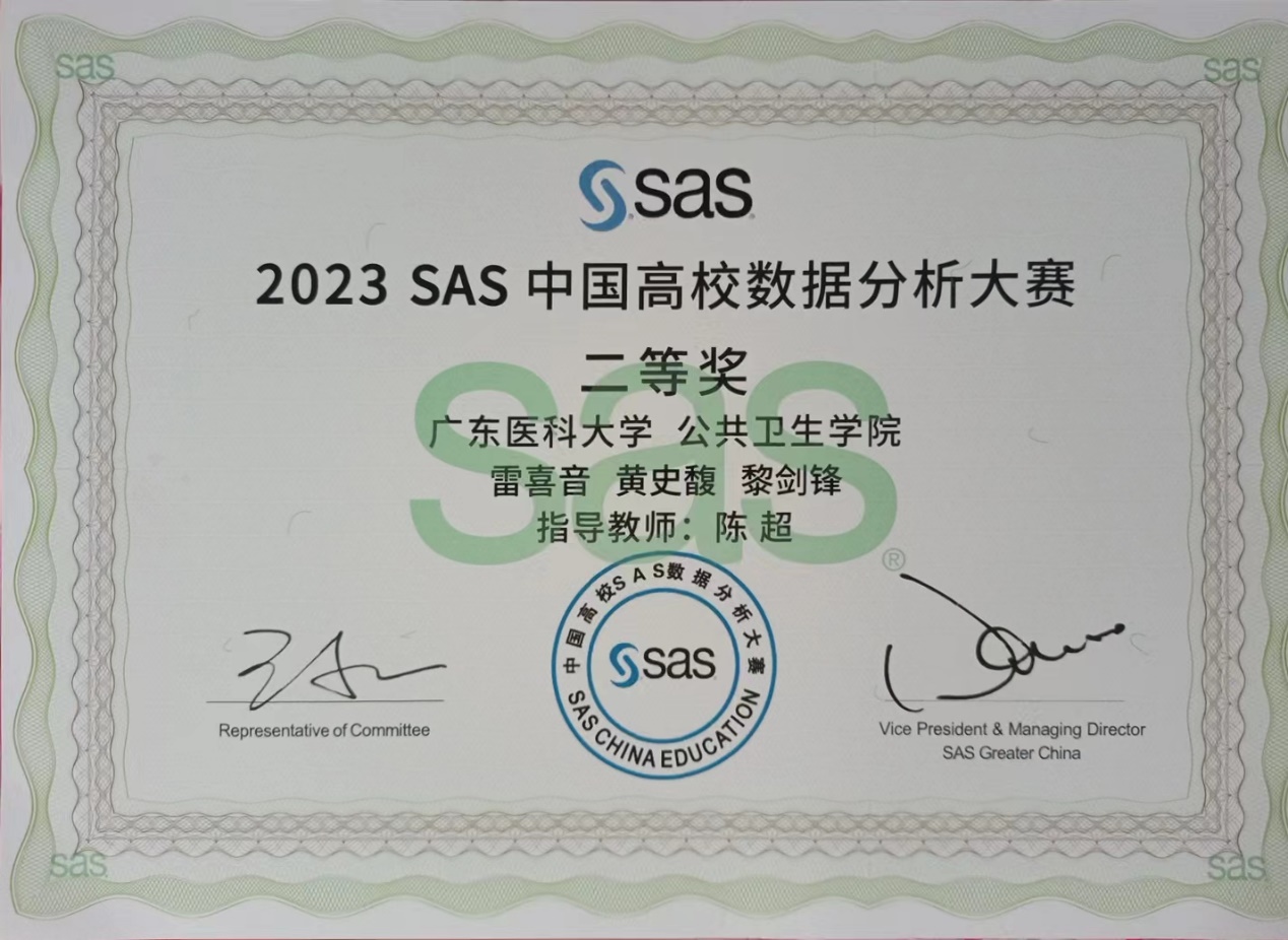 赛前,公共卫生学院流行病与卫生统计学系开展了针对统计学专业本科生的专项SAS培训,在多元统计分析课程授课的实践部分开展SAS学习,在赛程中积极指导学生面对问题和挑战,给予学生最大的帮助和指导。公共卫生学院立足于培养创新型人才,坚持开放办学,深化校企合作、协同育人,通过组织和参与各类竞技比赛,积极促进学生将理论与实践相结合,提升高层次应用型公共卫生人才培养。