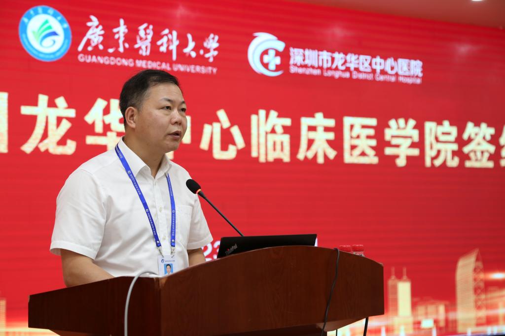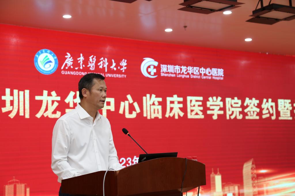 学校党委常委、副校长曾志嵘在签约揭牌仪式上致辞,他向深圳市龙华区委、区政府和龙华区卫生健康局一直以来对新葡萄8883官网的信任、支持和帮助表示了衷心的感谢,也对医院及医务人员对于学生在医院的成长和学习给予的教育、关心和帮助表达了衷心的感谢。他表示,校院双方的合作历史源远流长,合作过程坦诚、互信,希望签约后,双方在人才培养、临床研究、科技成果转化以及医院高质量发展过程所需的各个领域开展更广阔、更深入的合作,实现更进一步的共建共享、互利共赢。