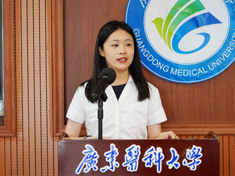 在即将毕业离校之际,护理学院卢家纯同学代表联合培养专业毕业生,表达了其对母校的不舍以及对学校老师们的感恩之情。她表示,今后的日子里,将牢记广东医校训,脚踏实地、精益求精、奋力前行,不辜负学校领导、老师的殷切期望,在未来的路上慷慨激昂,书写自己的成功与辉煌。