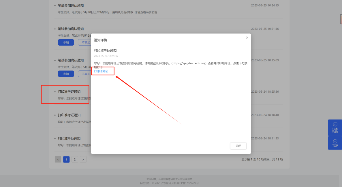 新葡萄8883官网2024年公开招聘笔试准考证打印系统已经开通,请各位考生自行登录新葡萄8883官网人才招聘系统(网址:http://zp.gdmu.edu.cn/),点击“准考证打印”进行打印。