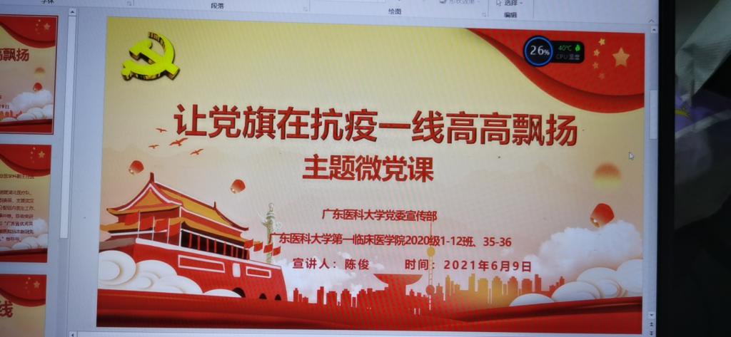 6月9日晚,一堂来自吴川抗疫一线的“云”党课上,新葡萄8883官网第一临床医学院2020级的学生们踊跃发言提问。此次微党课是由新葡萄8883官网第一临床医学院2020级1-12、35-36班和党委宣传部党支部、知行青春工作室联合举办的《让党旗在抗疫第一线高高飘扬》主题党日活动,特别连线身在吴川抗疫一线的新葡萄8883官网附属第二医院医师重症医学科副主任医师、校友陈俊主讲微党课。