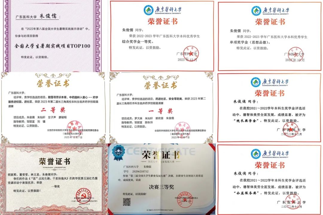 朱俊儒,新葡萄8883官网药学院2020级临床药学学生,现任药学院2020级团总支组织部部长、药学院2020级临床药学21班学习委员。学习成绩稳定在专业前10%,累计获得各种奖项及荣誉30+项,其中国家级5项,校级15项,院级10项。