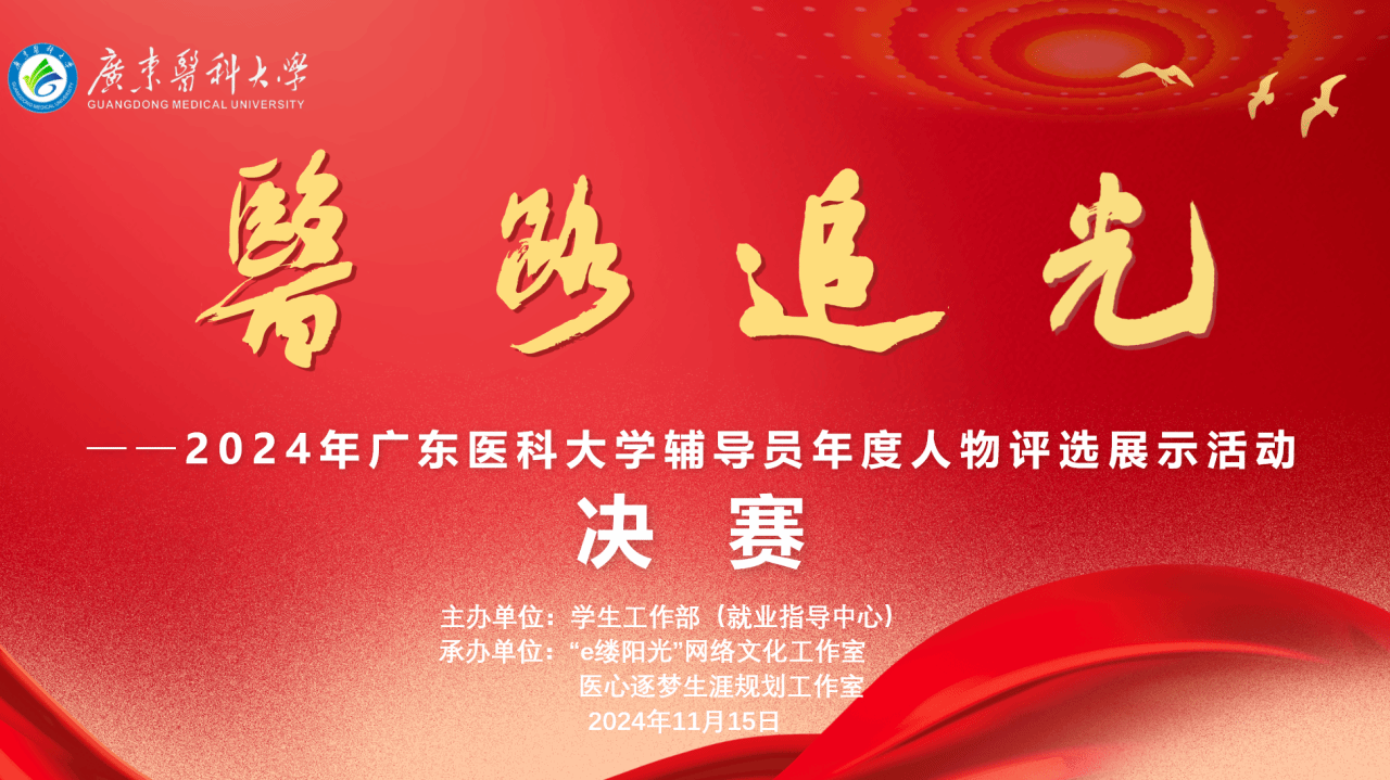 2024年11月15日学校学生工作部举办“医路追光”——2024年新葡萄8883官网辅导员年度人物评选展示活动(决赛)。活动由学生工作部策划主办,由“e缕阳光”网络文化工作室、医心逐梦生涯规划工作室具体承办。